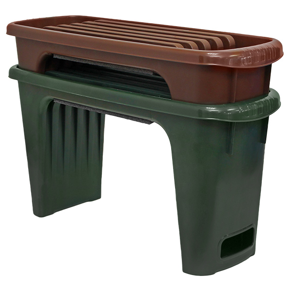 Новинка от компании Протэкт - пластиковая скамейка перевертыш. Ее особенность в том, что скамейка имеет две рабочие стороны: первая - традиционное использование скамейки; вторая - в перевернутом виде предназначена для работы на коленях. Мягкая подложка на скамейке облегчает работу на коленках. Скамейка устойчивая благодаря широким ножкам, которые не врезаются в землю.